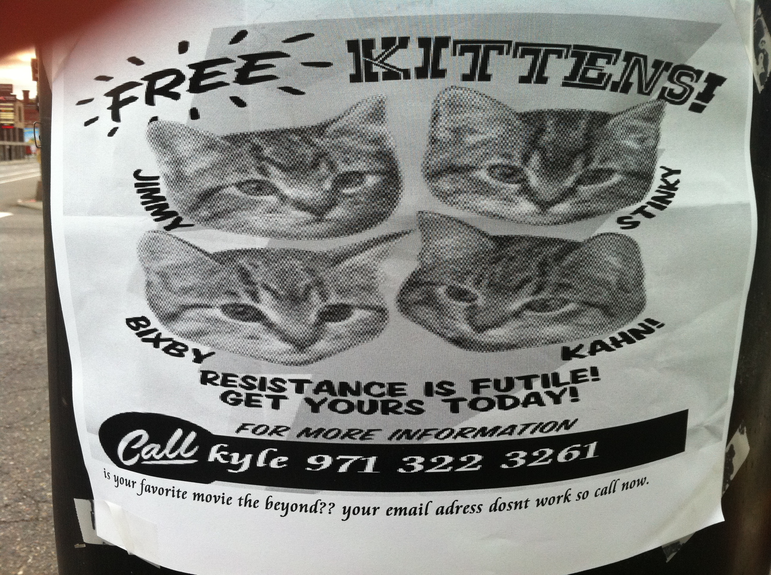 I have ten new kittens that are everywhere. THEY’RE EVERYWHERE! You don’t want another kitty. Trust me!
