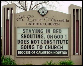 Hubby and I were both raised Catholic, which means neither of us has any desire to go to church now that we’re on our own and away from our families. But I’m beginning to think that God is sending “subtle” hints that Sundays will be plagued with mini disasters until we do.