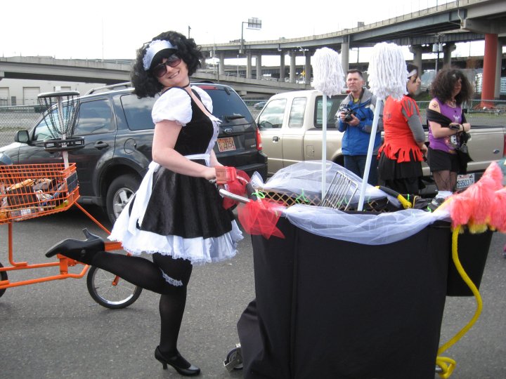 Okay so there’s this annual event in Portland called the Urban Iditarod.  It’s a race were teams of people (dogs) pull shopping carts (sleds) through a four mile course that goes all around downtown Portland. Each team has a theme that they all dress for and we all stop at bars and pubs along the race route.