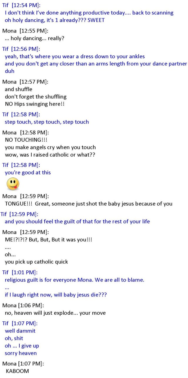 This entry was posted in Facebook/IM Dialogue, Humor and tagged , , , , , , , , , , . Bookmark the permalink.