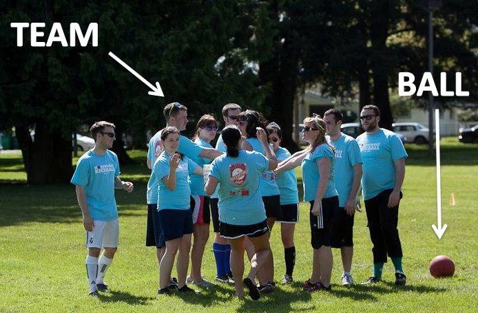 Dude, it was crazy, he clothesline the whole group! Tiaras, ascots, and beers were flying everywhere! Luckily no one was hurt… that badly. And an important lesson was learned; NOTHING will stop Nigel from getting a ball, not even an entire kickball team.