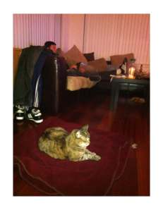 Hubby retaliates by yelling at CIA Cat and kicking her off the couch…