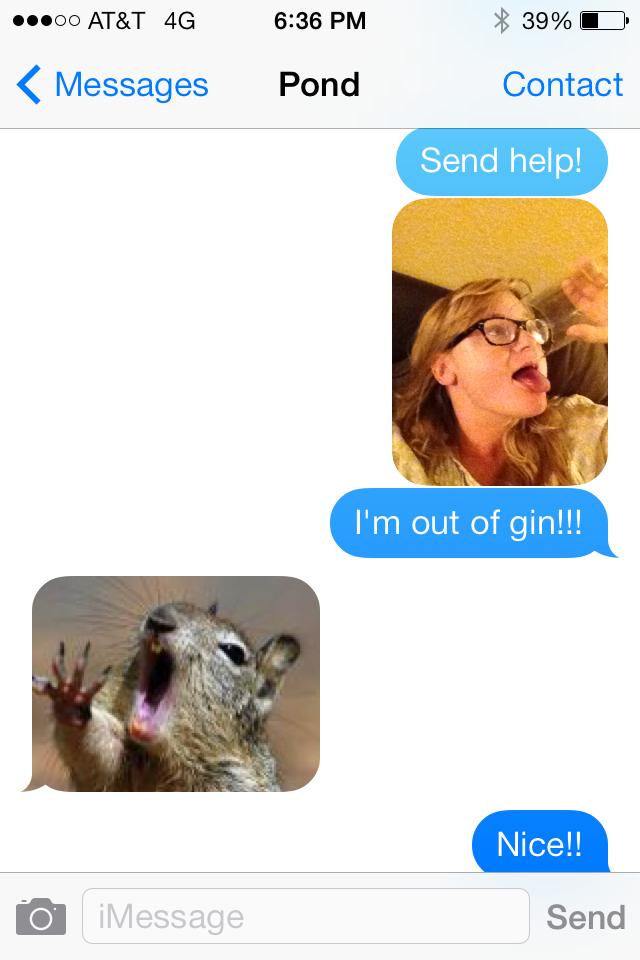 So being funny, and pretty drunk, I sent my bestie Ashley a text with a photo of me with an empty glass and the wording “Send Help! I’m out of Gin!!”.