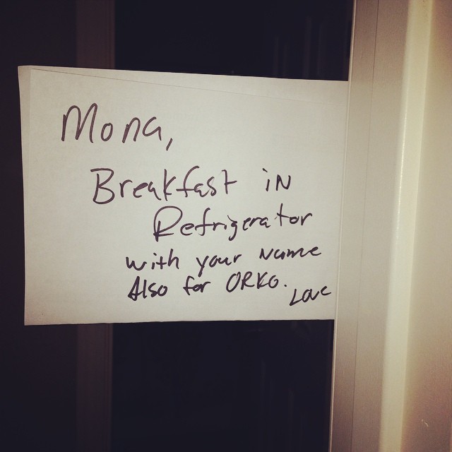 Anwho, he was nice enough to not wake me up and instead leave me a note, so that when I got up I would know where to find my delicious breakfast and apparently our puppies breakfast too. Here’s the note: